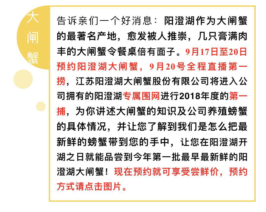 限時(shí)預(yù)售 大閘蟹專屬圍網(wǎng)第一撈21號(hào)開(kāi)湖就嘗鮮